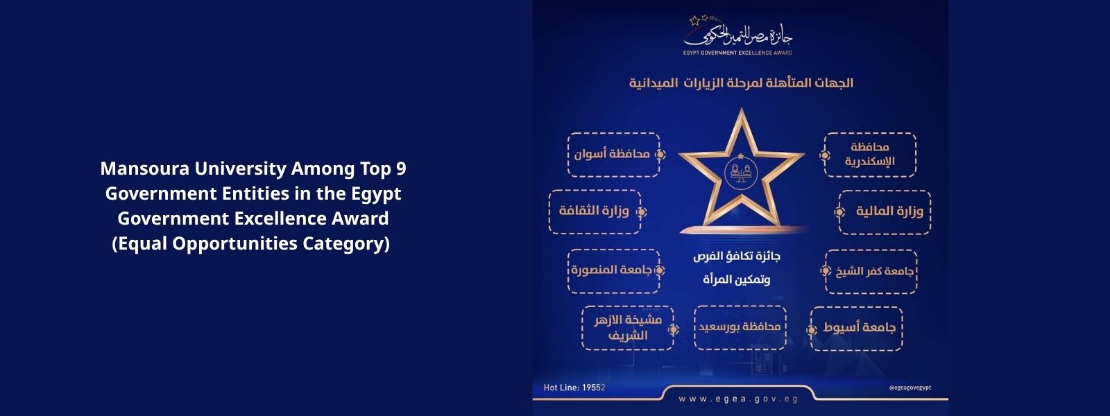 Mansoura University Among Top 9 Government Entities in the Egypt Government Excellence Award (Equal Opportunities Category)
