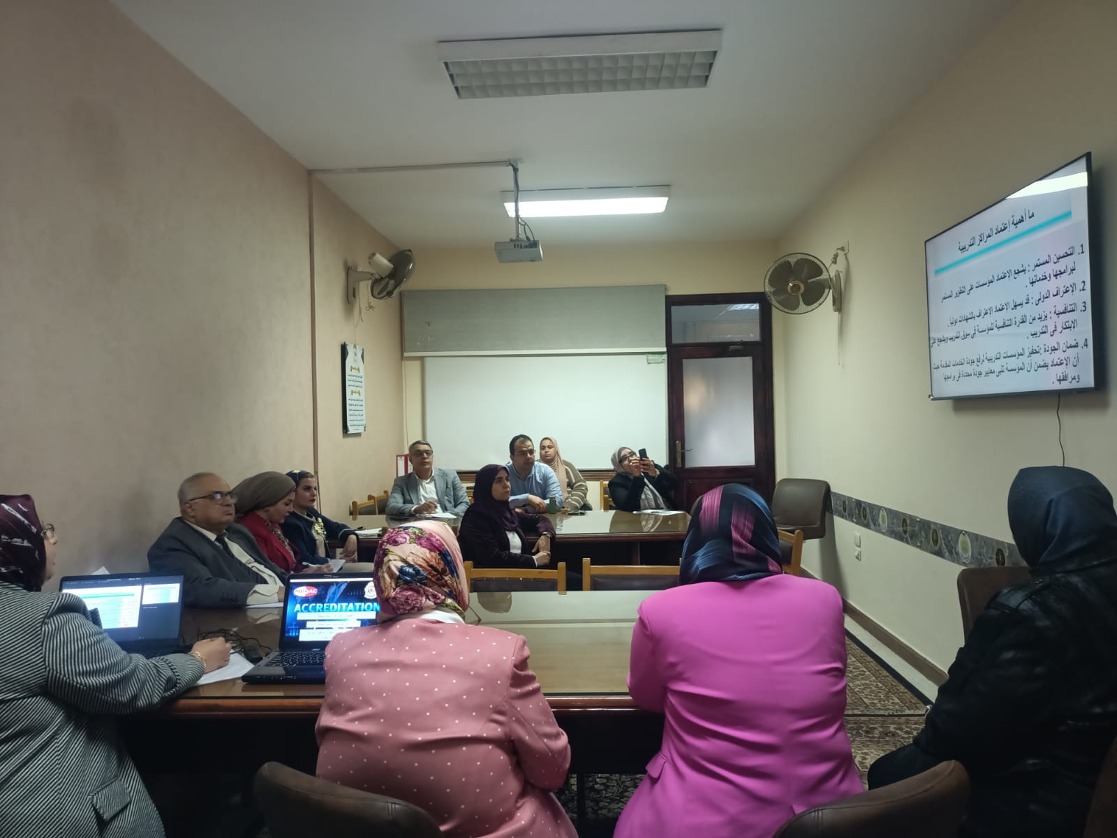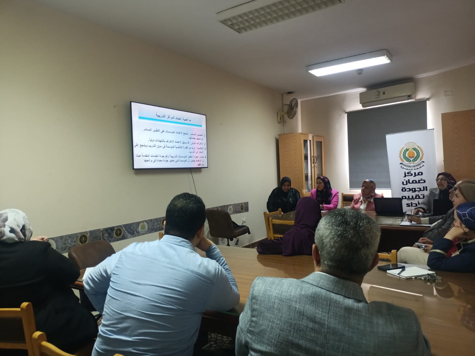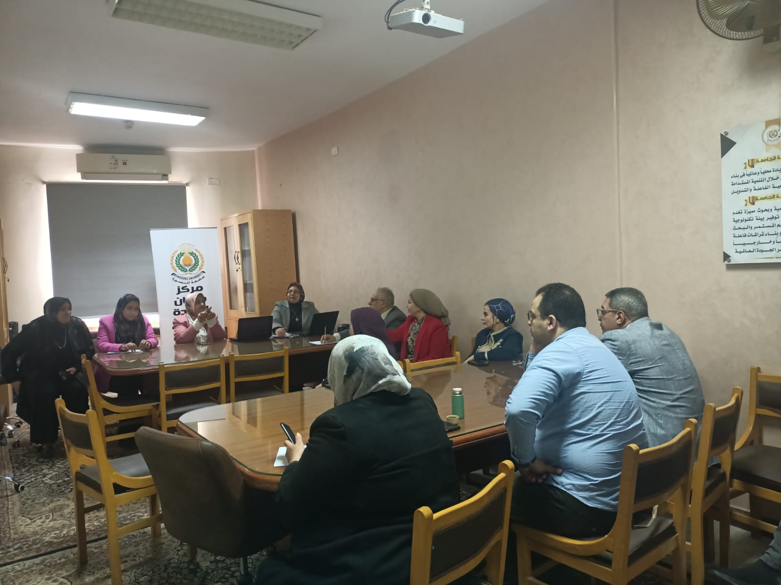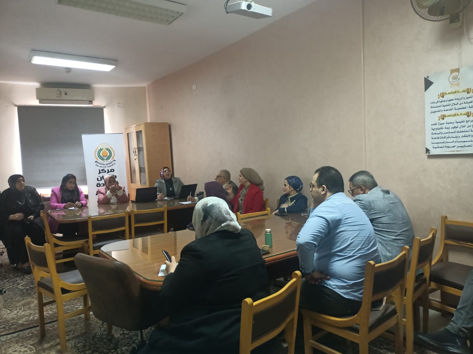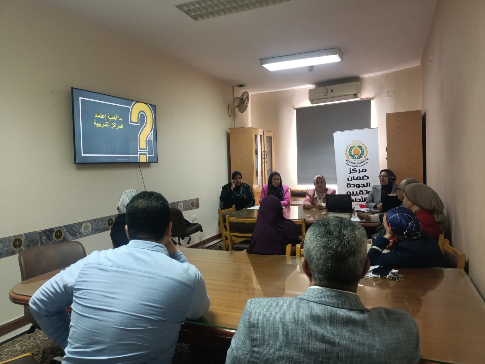 إجتماع مركز ضمان الجودة وتقييم الأداء بجامعة المنصورة مع مديرى المراكز التدريبية